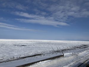 オホーツク海には流氷が着岸しております。